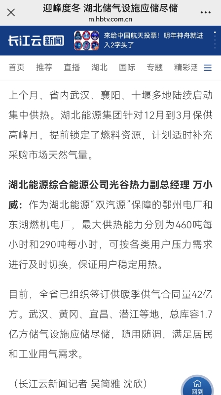湖北新聞:迎峰度冬 儲氣設施應儲盡儲